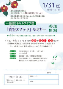 「青空メソッド」無料セミナー~排尿トラブルについて~参加者募集!1月31日(土)